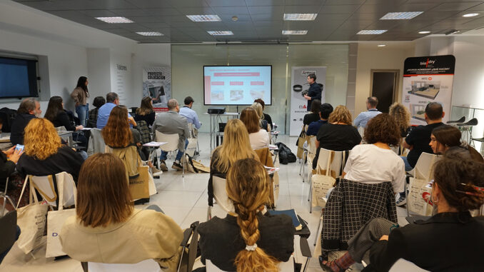 En la formación práctica impartida ese mismo día, los profesionales tuvieron la oportunidad de interactuar con el Ceramic Smart Repair Set, aprendiendo técnicas para aplicarlo en distintos tipos de materiales, desde piedra natural hasta superficies cerámicas de gran formato. Esta sesión permitió que los asistentes comprobaran la facilidad de uso y la eficacia del maletín en situaciones reales de obra.