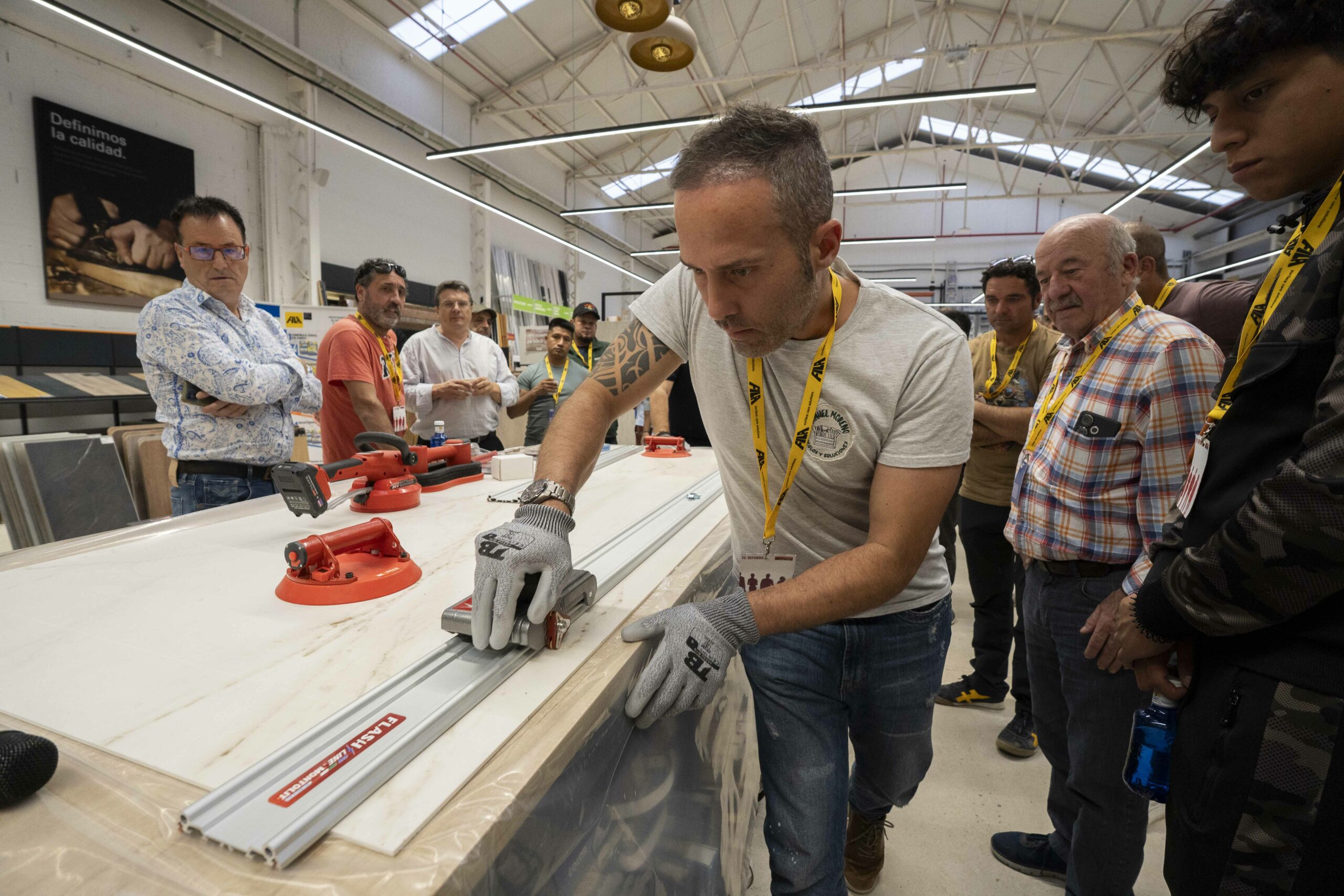 Durante la Masterclass de Burgos, los asistentes pudieron conocer en detalle las herramientas más avanzadas de Montolit, diseñadas para garantizar precisión, durabilidad y eficiencia en obra. Se destacaron especialmente los sistemas de corte manual y las soluciones técnicas que facilitan el trabajo con piezas de gran formato, un segmento en el que la marca es reconocida por su innovación y fiabilidad.