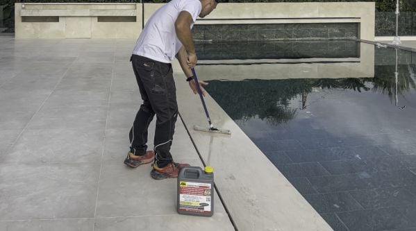 CLEANER PRO permitió eliminar restos cementosos y el característico velo blanquecino que afecta a la piedra natural en ambientes marinos, devolviendo al material su aspecto original sin dañarlo.