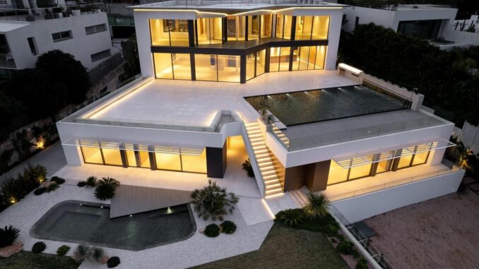 En lo alto de la urbanización de Porroig, una de las zonas más exclusivas de Ibiza, se erige Sa Gavina, una villa de lujo que combina diseño contemporáneo, integración paisajística y un profundo respeto por los materiales naturales. El proyecto, firmado por el arquitecto David de la Fuente, de Azul Arquitectura, promovido por Punta Llumbi S.L. y ejecutado por la constructora Pepe Simón, se despliega sobre una parcela de 2.450 m² con una superficie construida de 850 m².